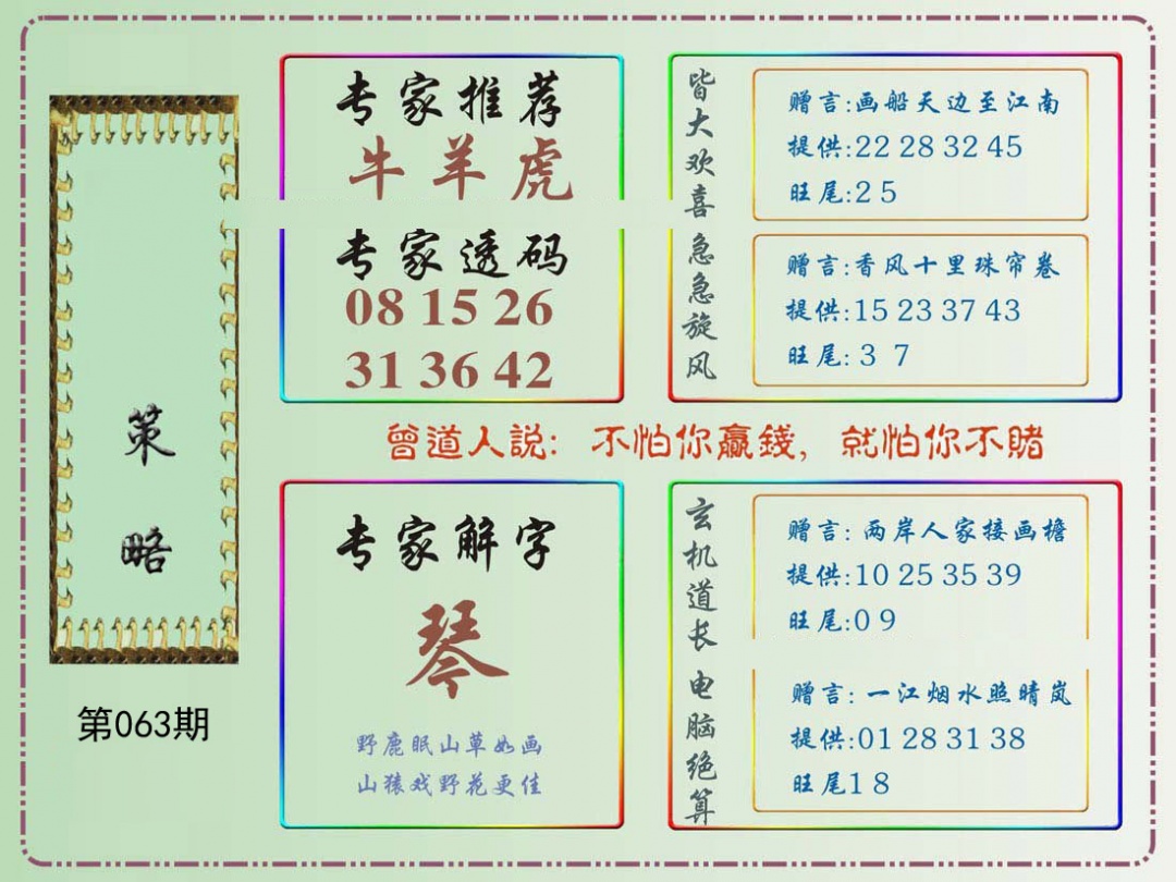 | 041期: ⑦肖 | 龙猴羊猪牛狗鼠 | 兔03 |